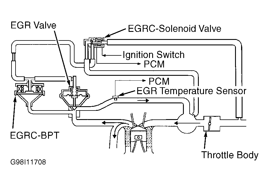 PCM controls EGR system based on engine operating conditions. On I30, PCM controls ground circuits for EGR Volume Control Valve (EGR-VCV). On G20 and Q45, PCM controls ground circuit for EGR Control (EGRC) solenoid. See Fig 1 and Fig 2 . EGR-VCV or EGRC solenoid remains closed under certain conditions including the following: