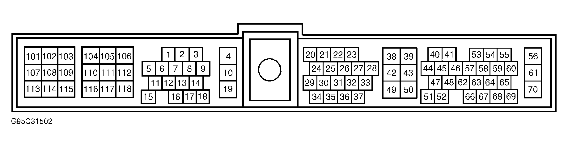 2. Turn ignition off. Disconnect PCM harness connector. Check continuity between ground and PCM harness connector terminals No. 10, 19, 39, 43, 106, 112 and 118 (Black wires). See Fig 2. If continuity exists on all wires, go to next step. If continuity does not exist on any wire, repair open in effected wire. See appropriate wiring diagram in WIRING DIAGRAMS article.