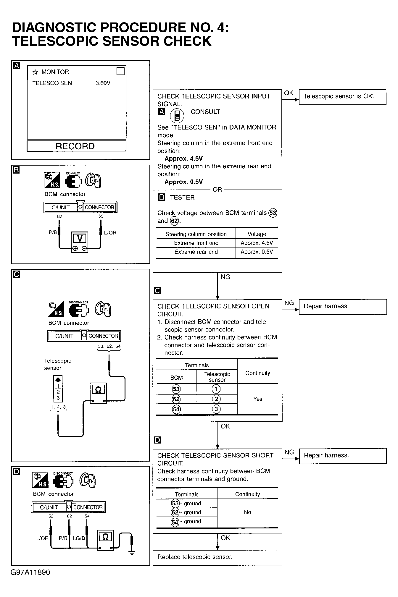 - Test telescopic sensor. See Figure under SYSTEM TESTS.