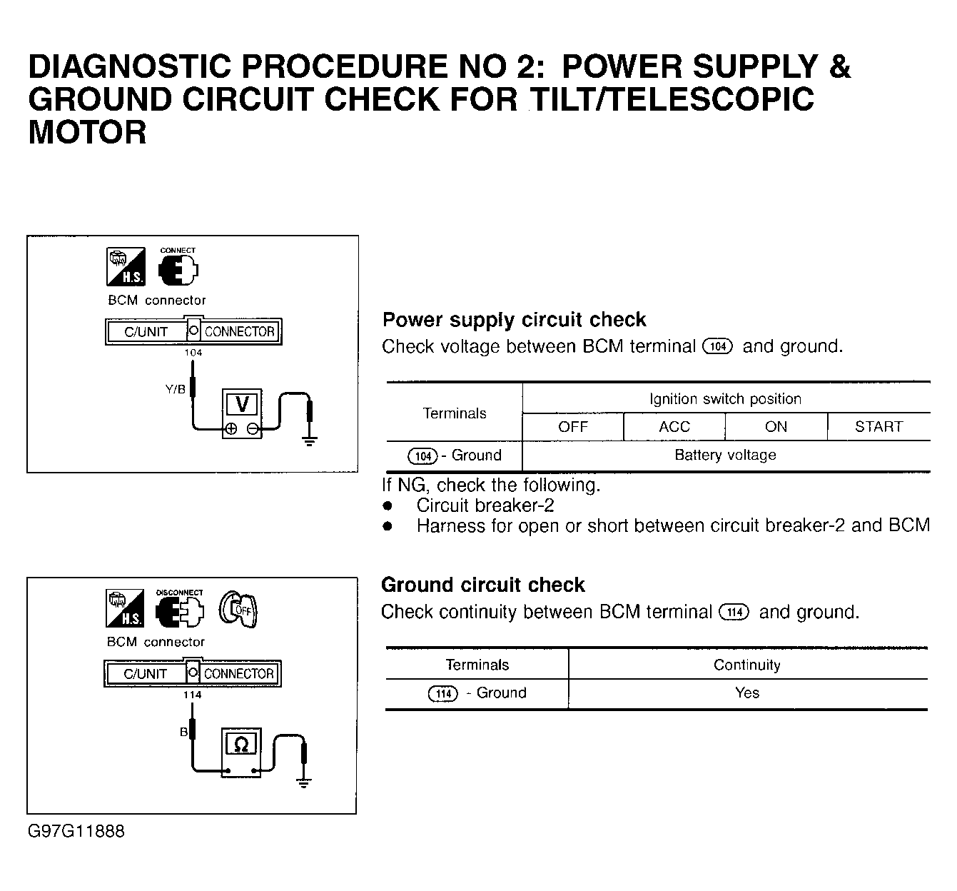 - Test tilt/telescopic motor power supply and ground circuits. See Figure .