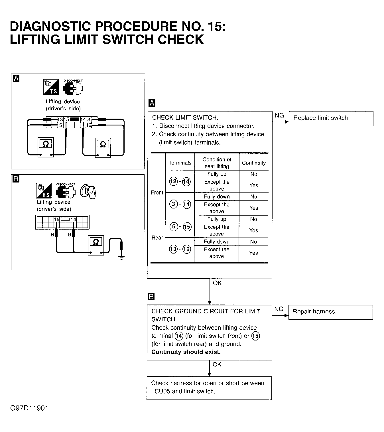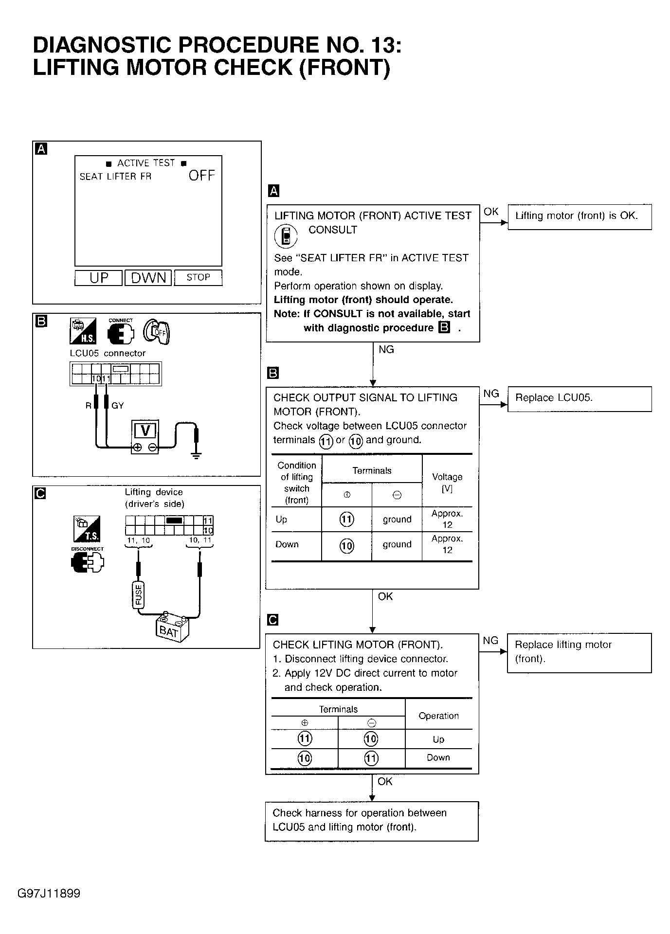 Home >> Infiniti >> 2000 >> Q45 Base >> Repair and Diagnosis (Single Page) >> Accessories & Equipment >> Memory Modules >> Automatic Drive Positioner Systems >> Trouble Shooting >> Functions Inoperative During Both Automatic & Manual Operations >> Seat Lifting (Front) Function Is Inoperative