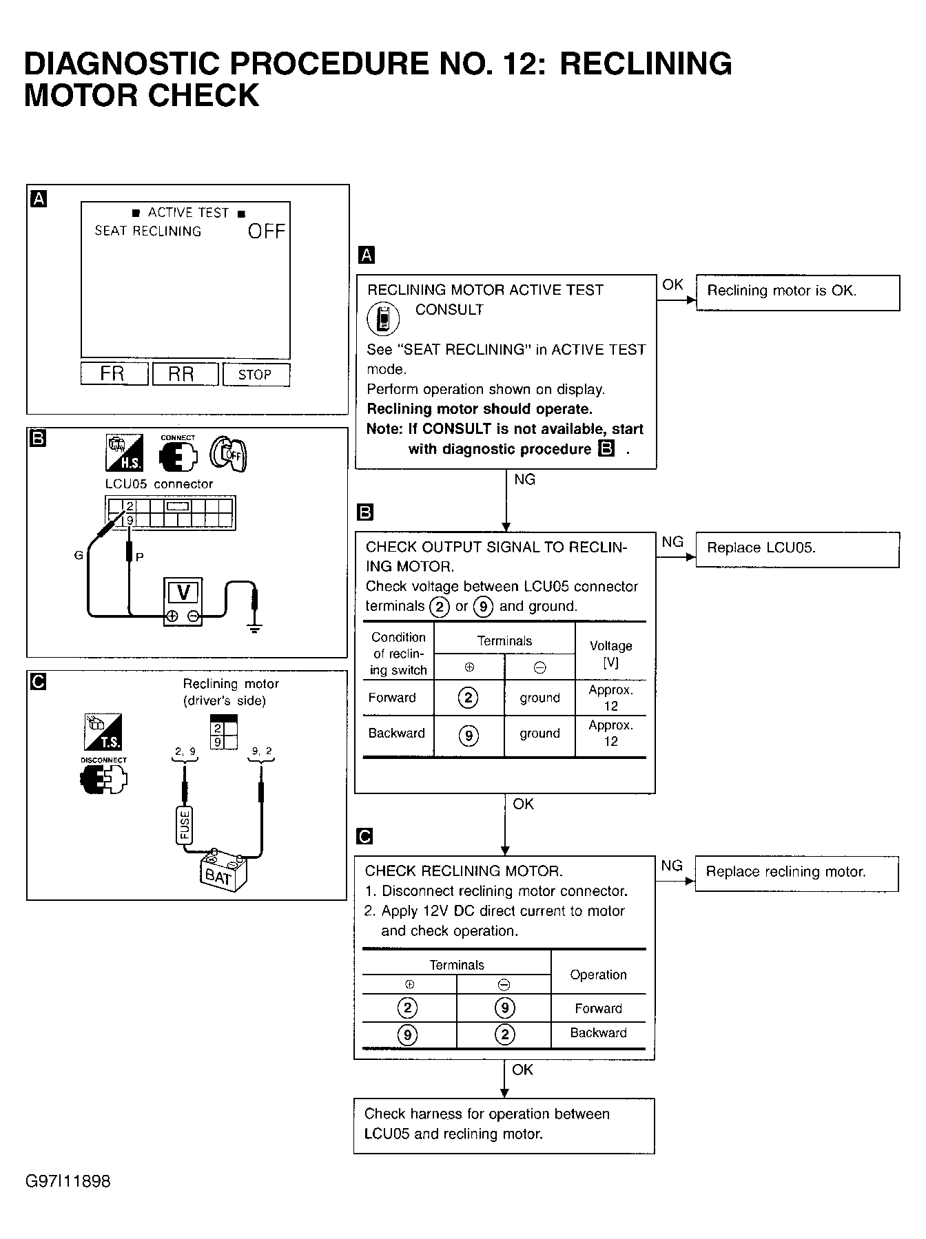 Home >> Infiniti >> 2000 >> Q45 Base >> Repair and Diagnosis (Single Page) >> Steering >> Steering Column >> Automatic Drive Positioner Systems >> Trouble Shooting >> Functions Inoperative During Both Automatic & Manual Operations >> Seat Reclining Function Is Inoperative