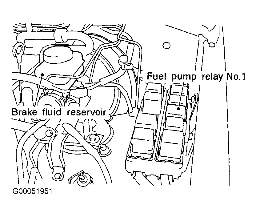 - Turn ignition off. Remove fuel pump relays No. 1 and 2. See Figure and Fig 1