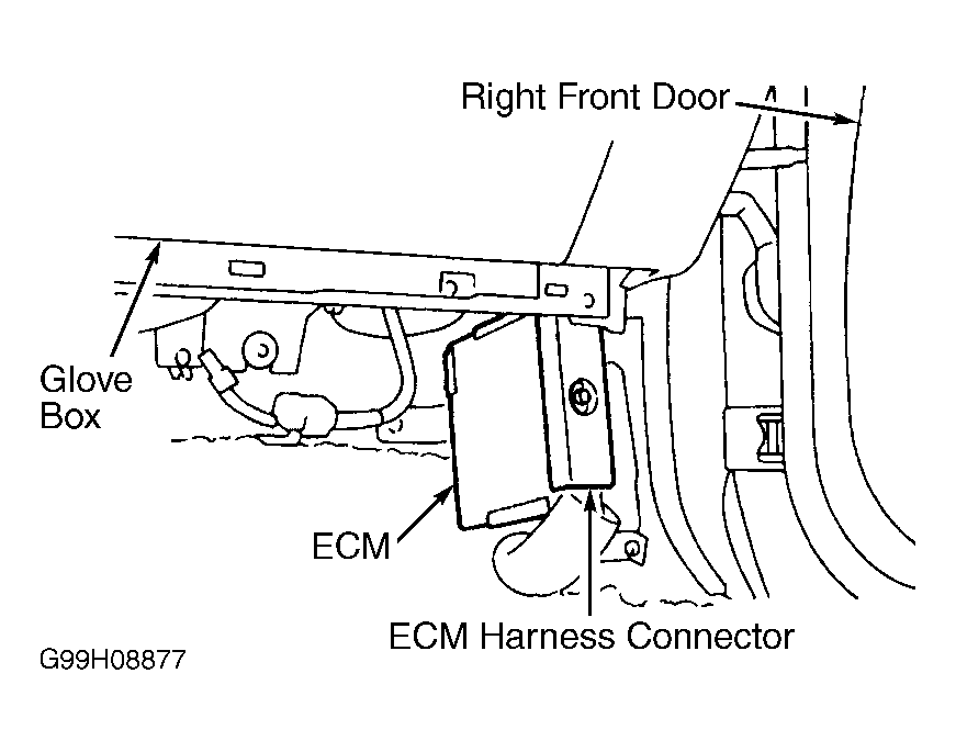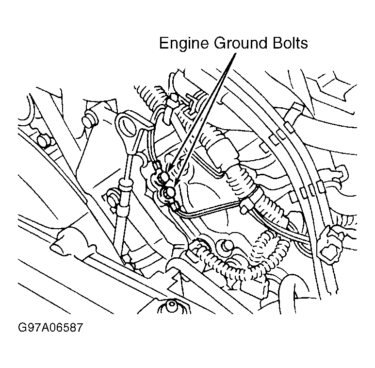 - Turn ignition off. Loosen and retighten engine ground bolts. See Fig 4. Disconnect ECM harness connector. See Fig 1. Check continuity between engine ground and ECM harness connector terminals No. 121, 122, 125, 126, 127 and 128 (Black wires). Also check circuits for short to voltage. Repair as necessary and retest system. If ground circuits are okay, go to next step.