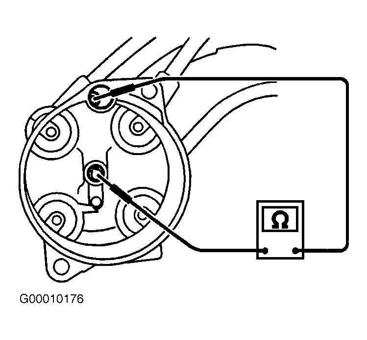 - Remove distributor cap. Measure resistance of resistor as shown in illustration. See Fig 3. Resistance should be 4000-8000 ohms at 77°F (25°C). If resistance is as specified, go to next step. If resistance is not as specified, replace distributor cap and retest system.