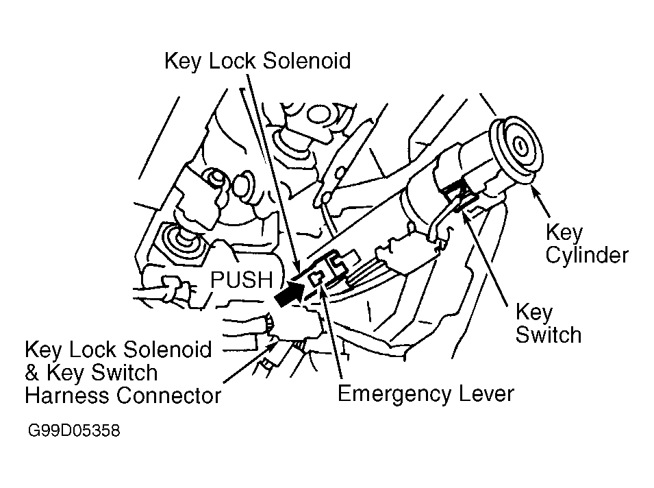 Disconnect key switch harness connector. See Figure . Check for continuity between key switch harness connector terminals No. 3 and 4. See Figure . With key inserted, continuity should exist. With key removed, continuity should not exist. If continuity is not as specified, ensure switch is properly adjusted. Replace as necessary.