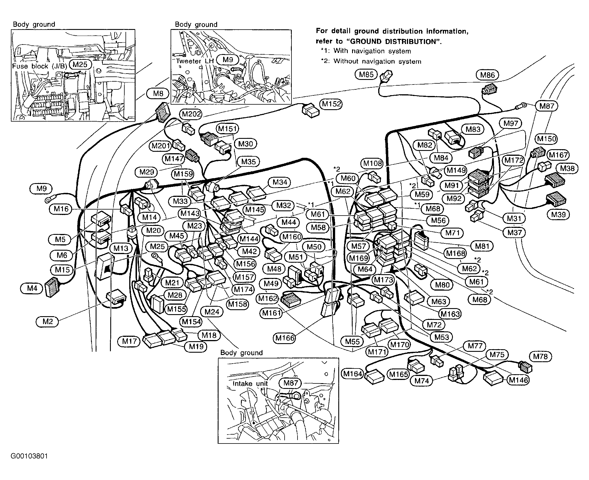 - Check for poor connection at Brown, 24-pin connector M2 terminal No. 24 (Black wire). See Fig 1 . Connector M2 is located under left side of instrument panel. See Figure or Figure .