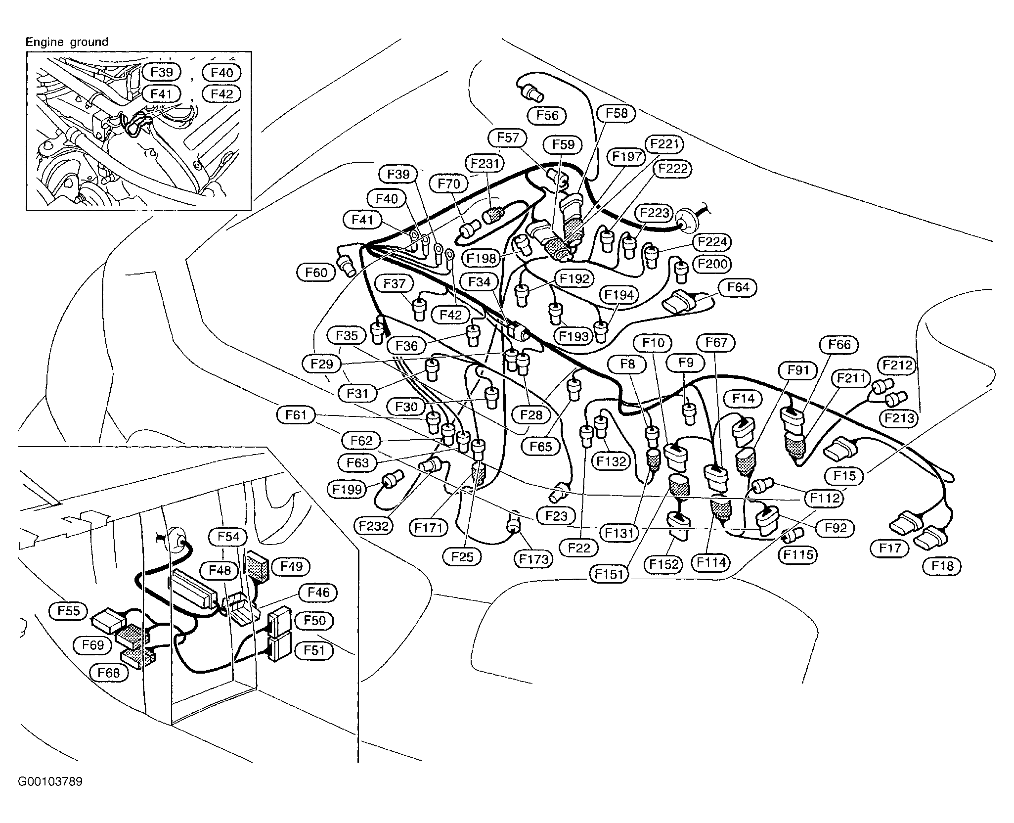 • Check for poor connection at Black, 8-pin connector F18 terminal No. 5 (Red wire). See Figure . Connector F18 is located on left side of engine compartment. See Figure or Figure .