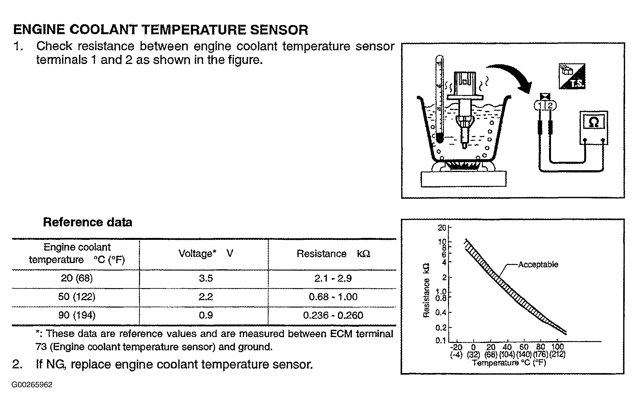 For engine coolant temperature sensor testing, see