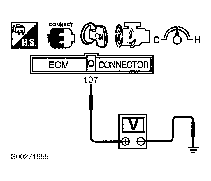- Check that voltage between ECM terminal No. 107 (fuel tank temperature sensor signal) and ground is less than 4.2 volts. See Fig 1.