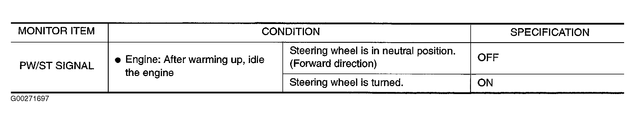 For power steering pressure sensor specification data, see