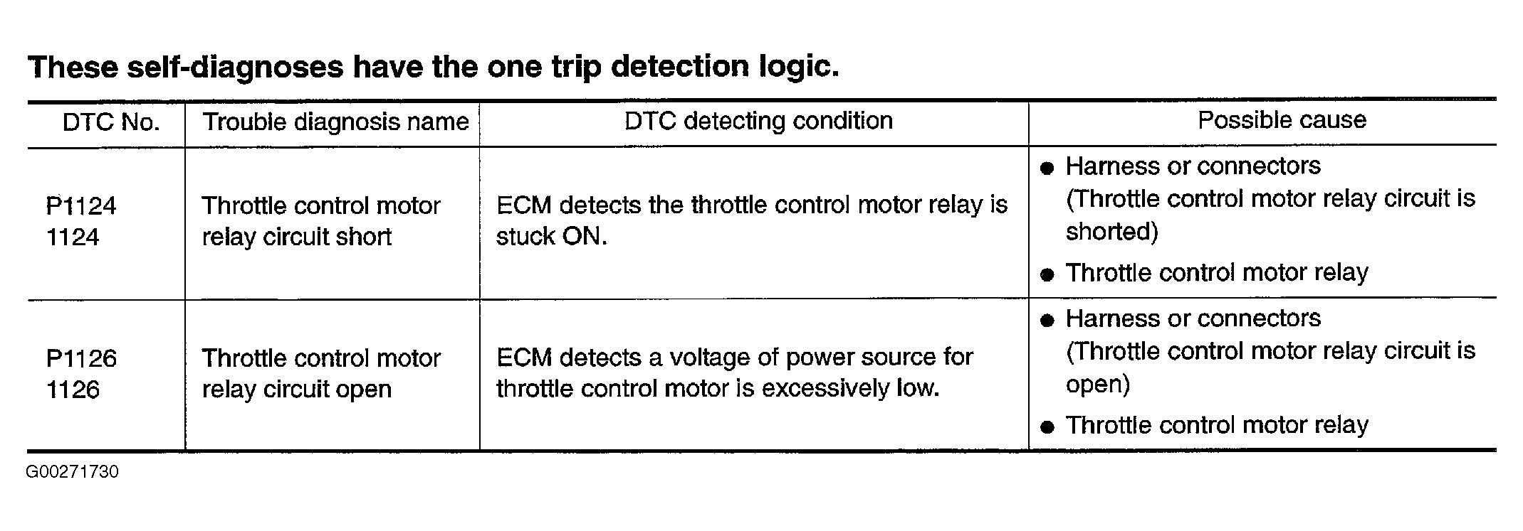DTC P1124: Throttle Control Motor Relay Circuit Short & DTC P1126: Throttle Control Motor Relay Circuit Open