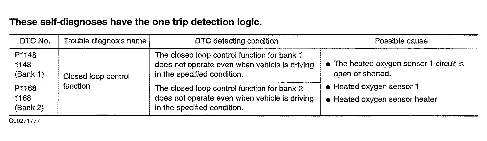 Fig 1: Identifying DTCs P1148 & P1168 On-Board Diagnosis Logic