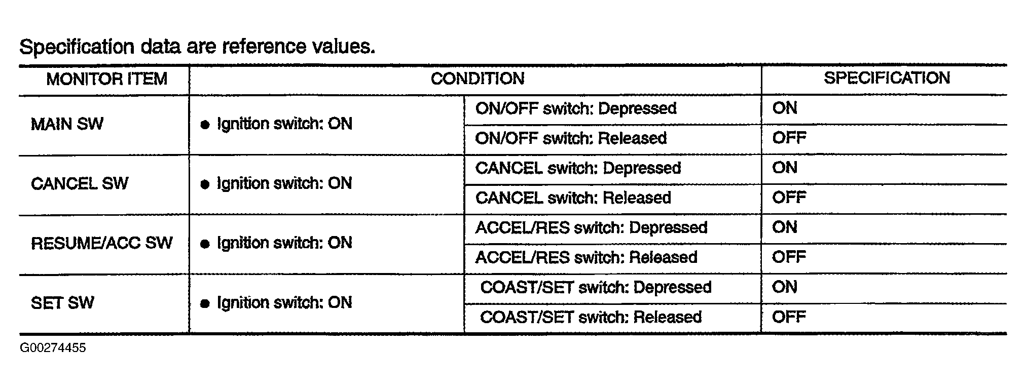 For ACSD steering switch specification data, see