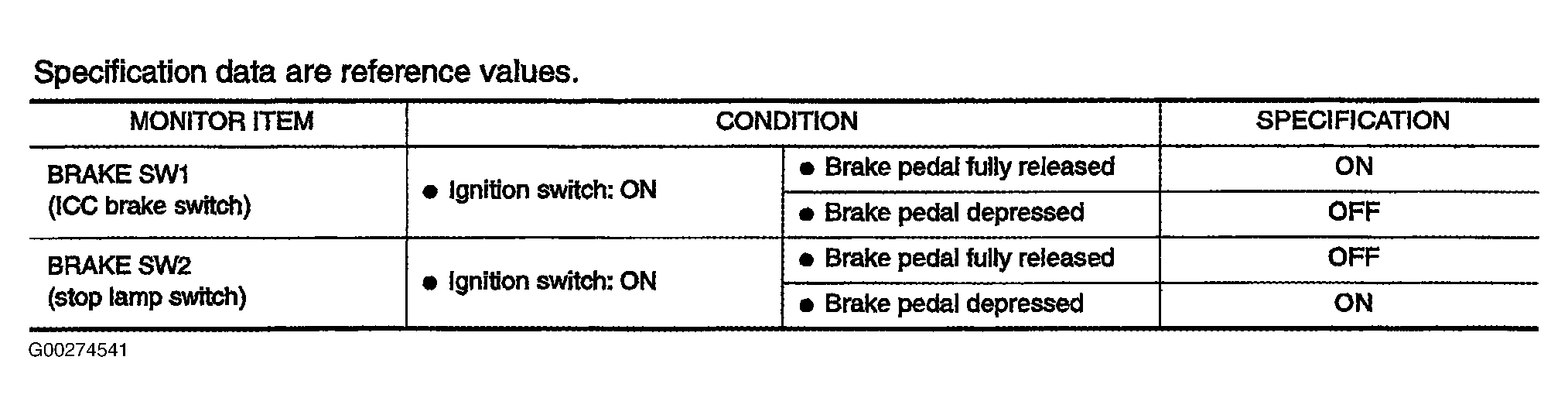 For brake switch (ICC and stop lamp) specification data, see