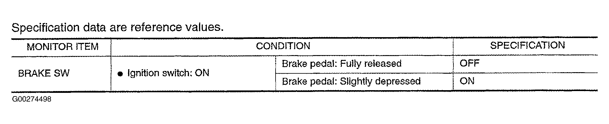 For brake switch specification data, see