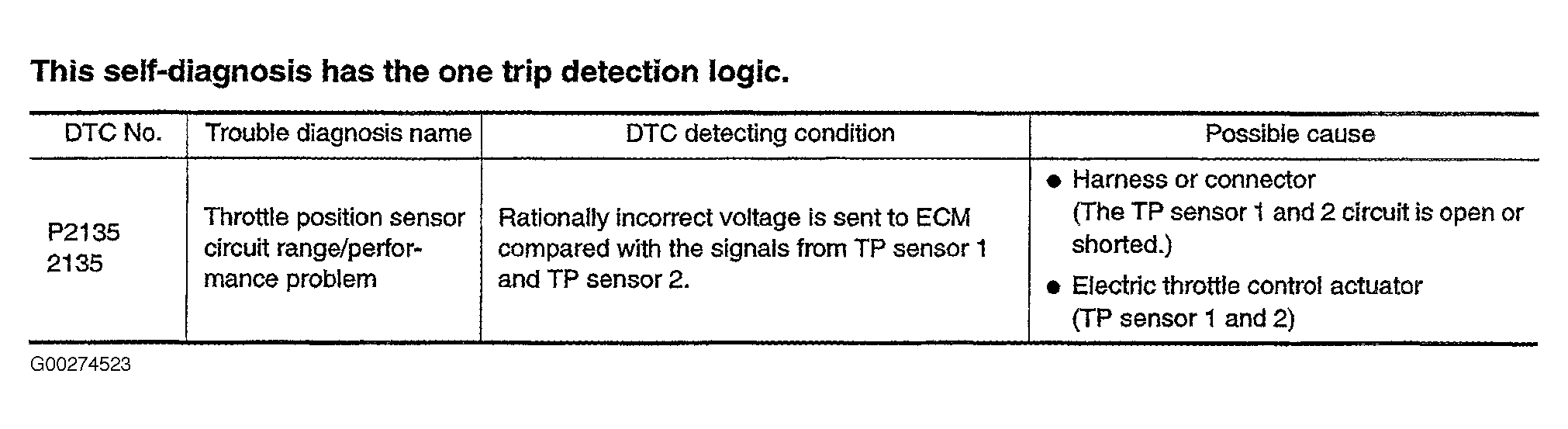 Fig 1: Identifying DTC P2135 On-Board Diagnosis Logic