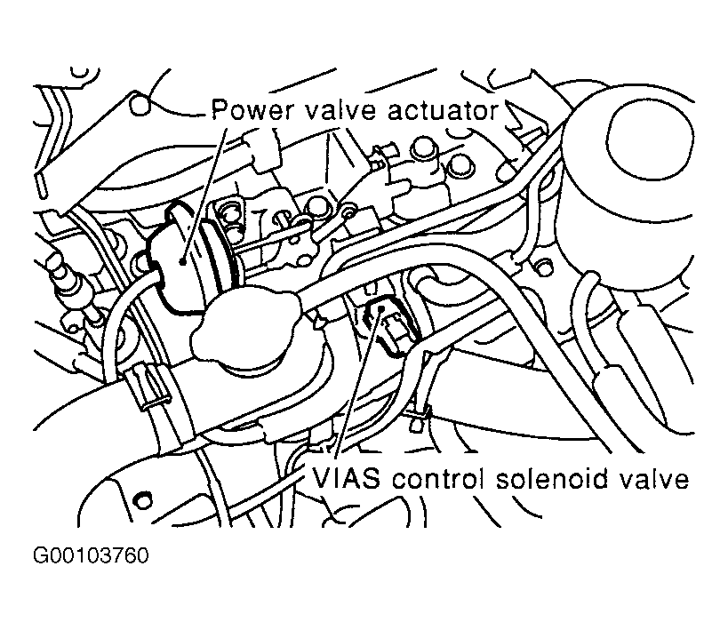 - Stop engine, check hoses and tubes between intake manifold and power valve actuator for cracks, clogging, improper connection or disconnection. If no problem is found, go to next step. If problem is found, repair as necessary.