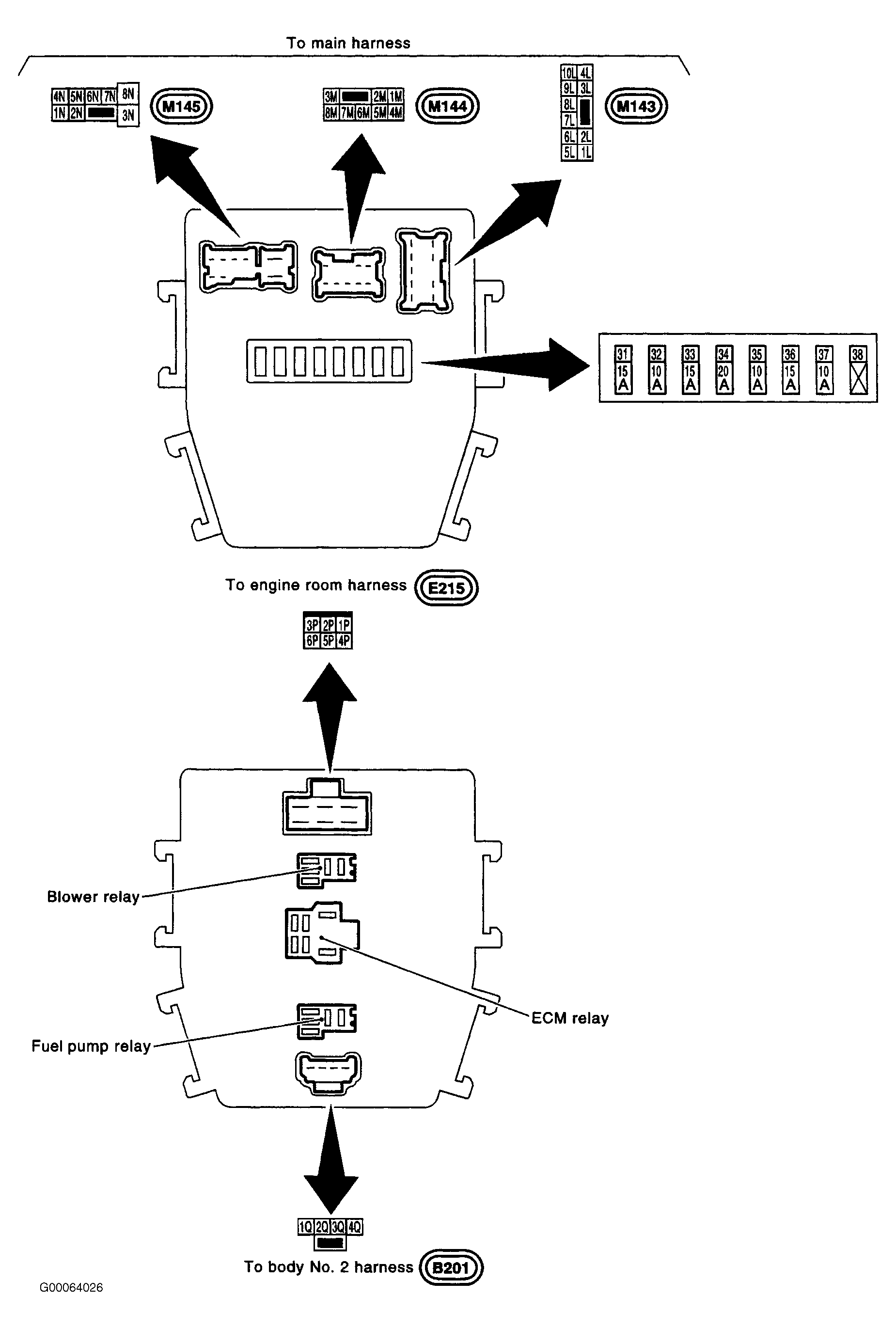 - Fuse block (J/B) No. 2 connectors M143 and E215. See Figure.