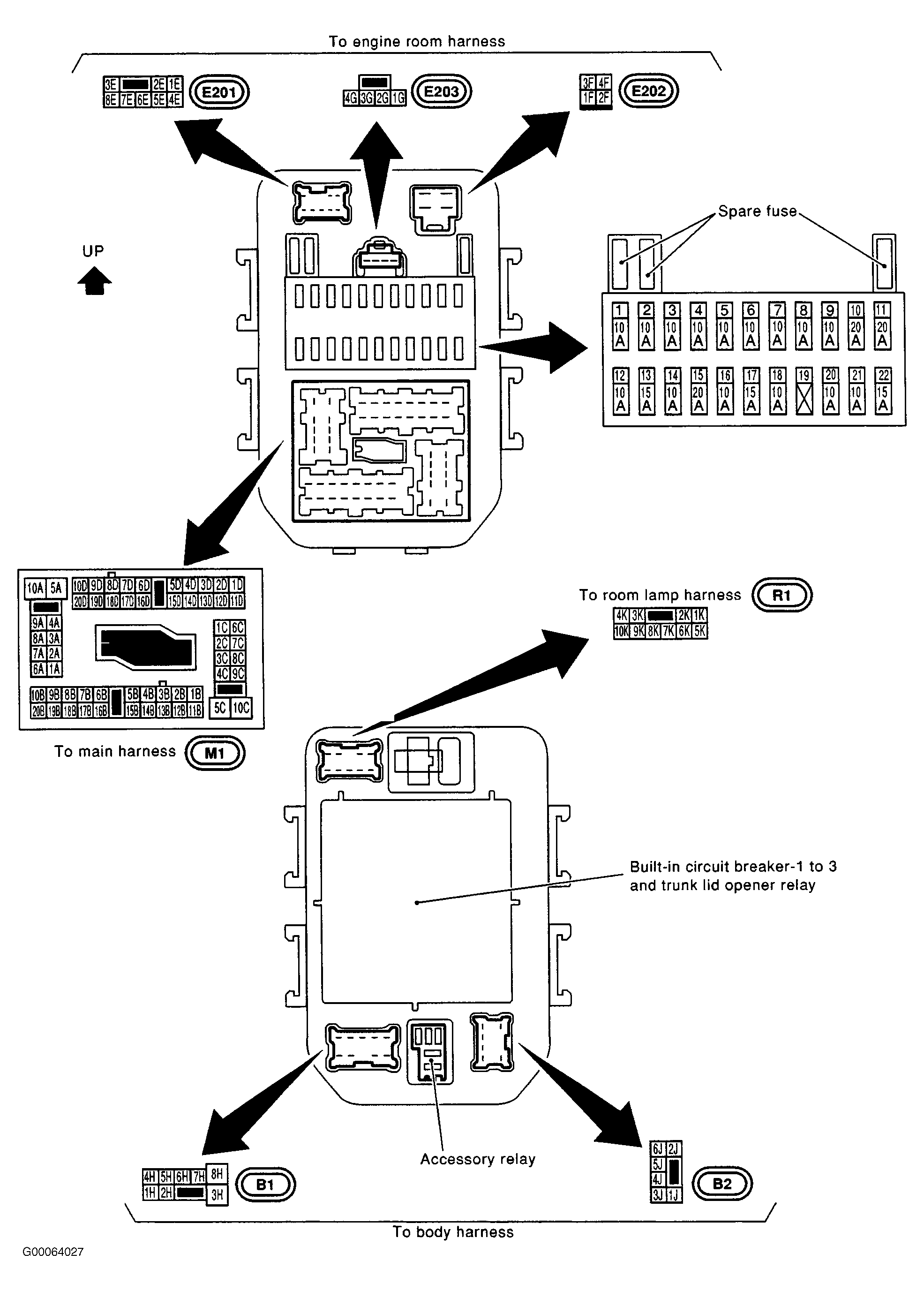 - Fuse block (J/B) No. 1 connector M1. See Figure.