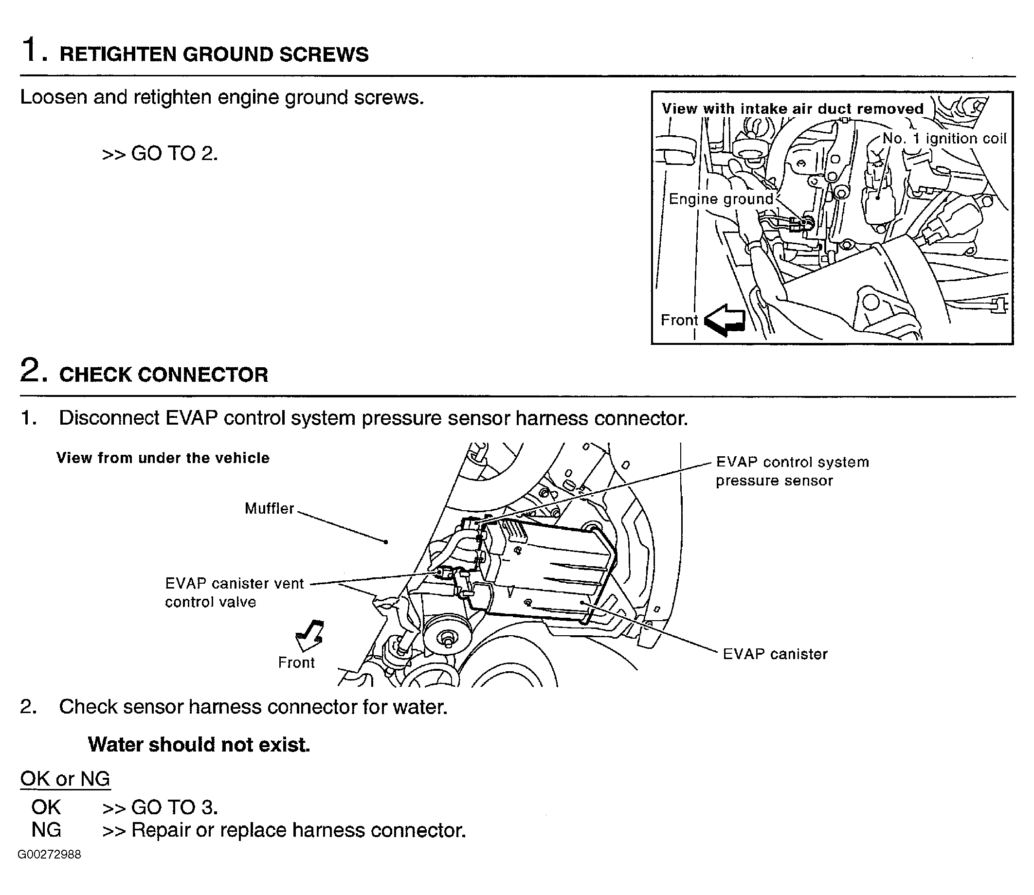 Fig 1: Diagnostic Procedure For EVAP Control System Pressure Sensor (Step 1-2)