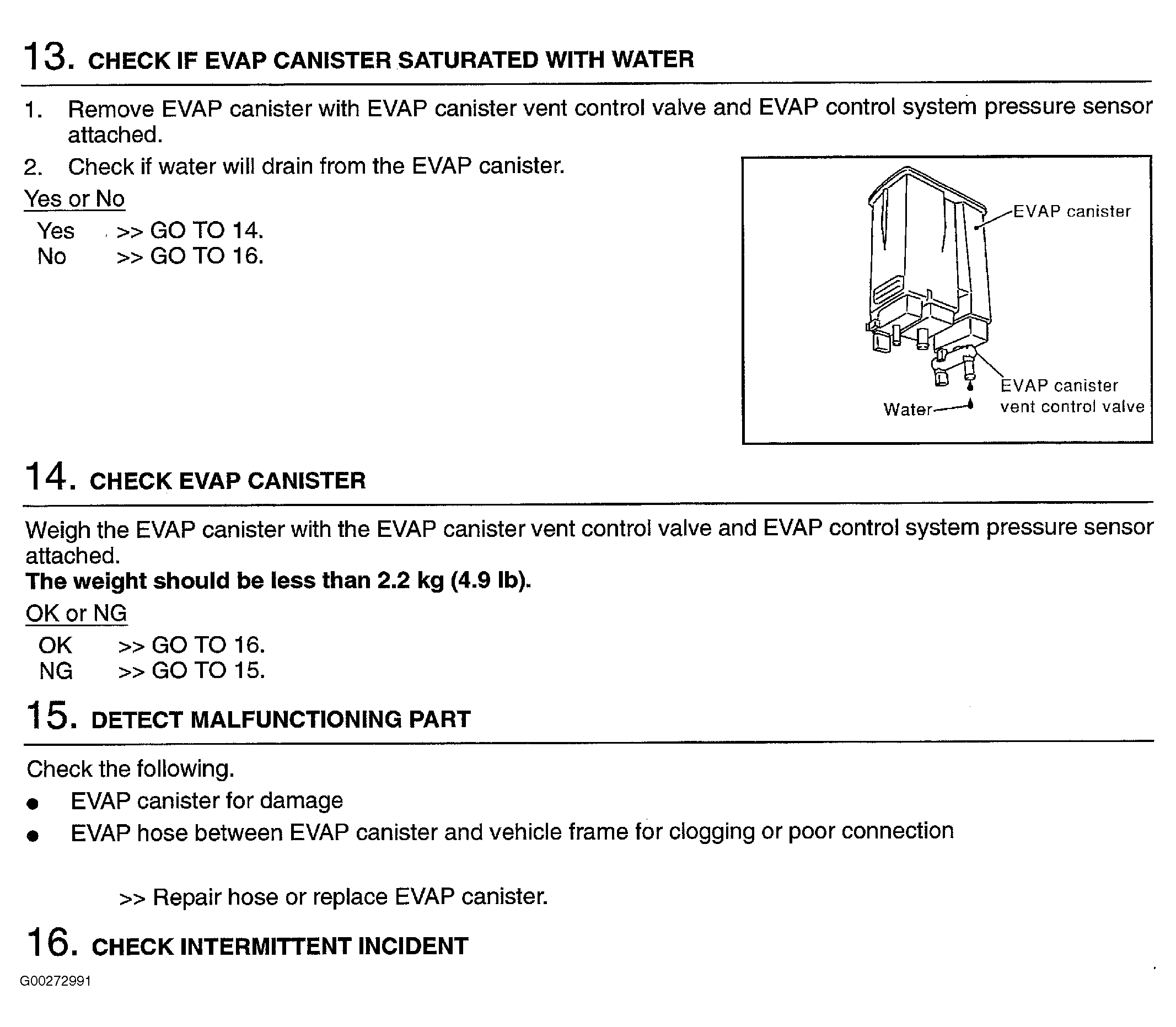 Fig 4: Diagnostic Procedure For EVAP Control System Pressure Sensor (Step 13-16)