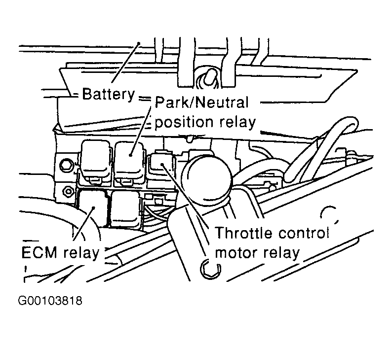 - Turn ignition off. Remove throttle control motor relay. See Figure