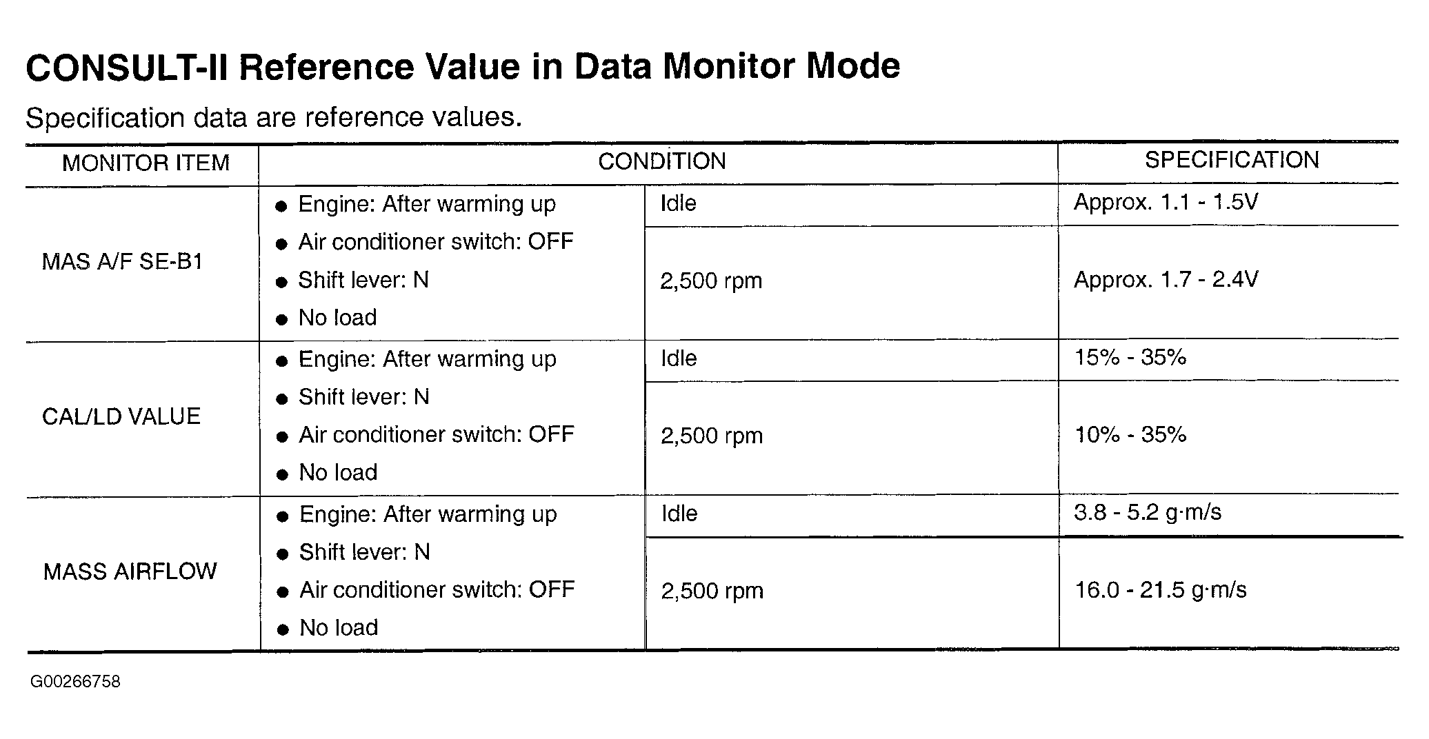 Fig 1: CONSULT-II Reference Value In Data Monitor Mode