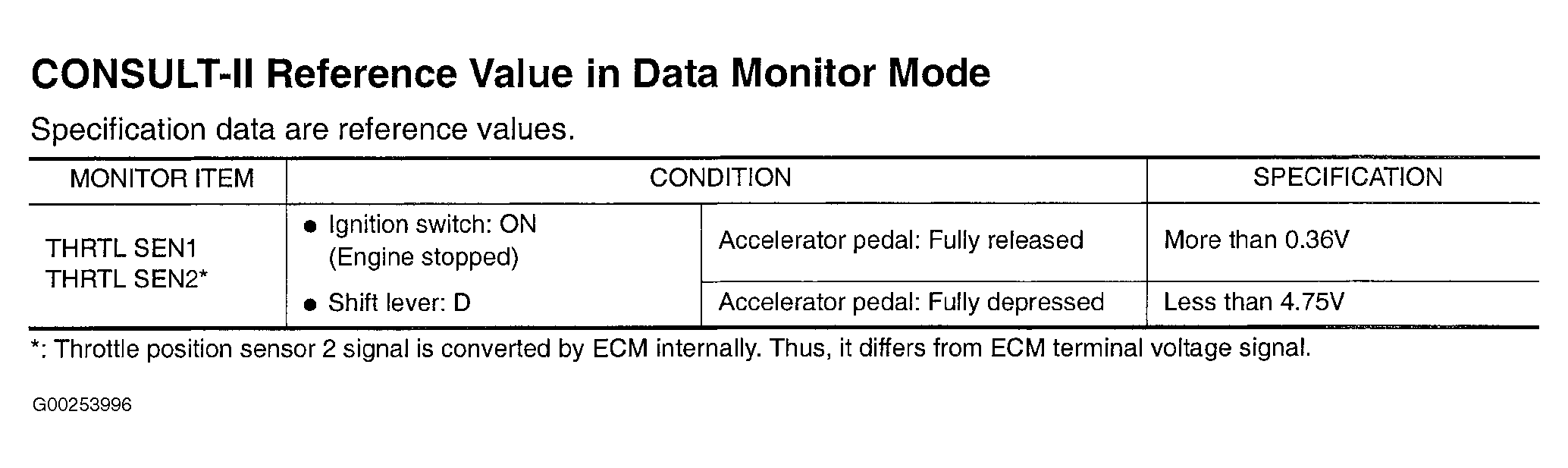 For CONSULT-II reference value in data monitor mode, see