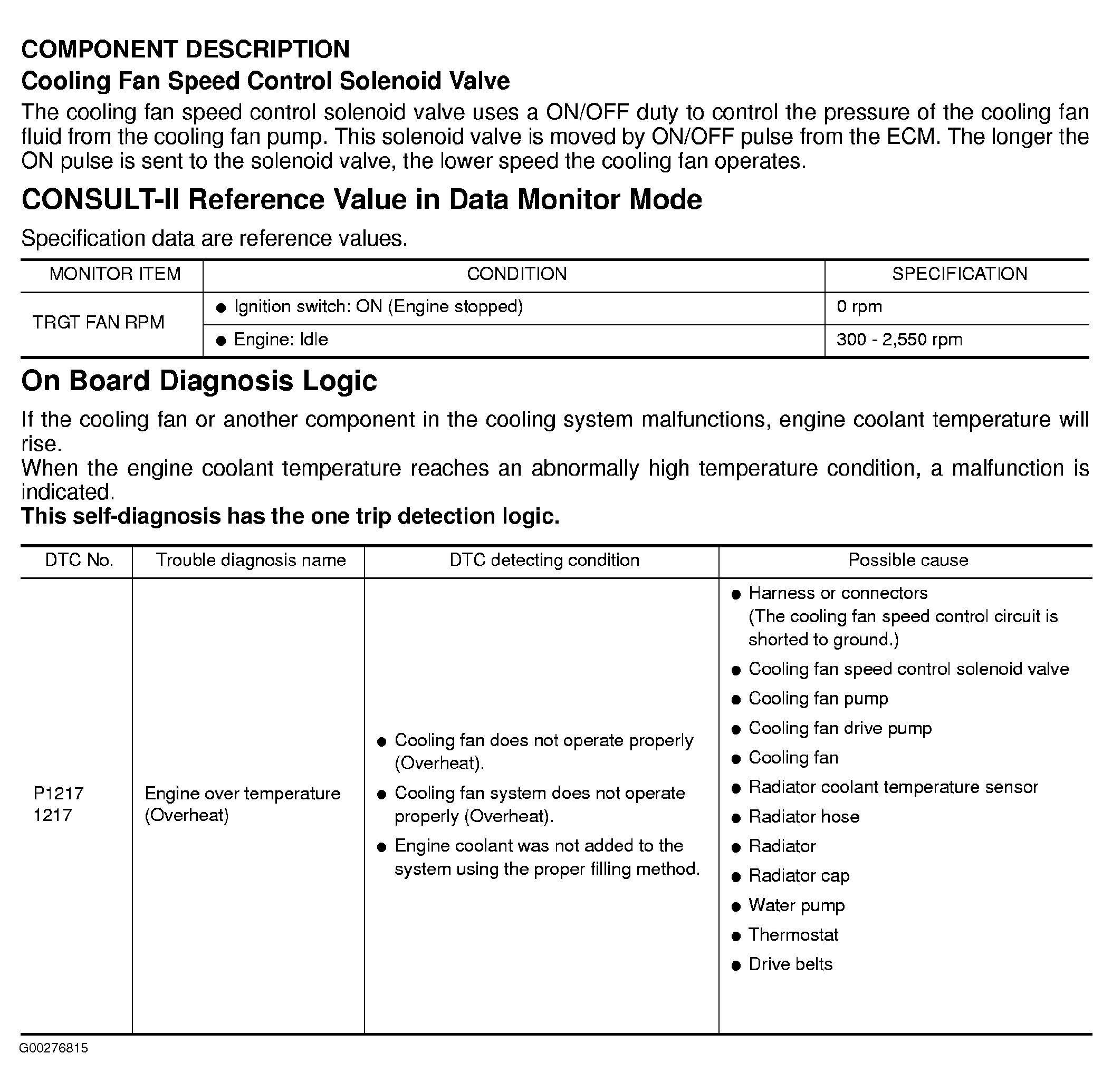 Home >> Infiniti >> 2003 >> M45 >> Repair and Diagnosis >> Engine Performance >> System >> Engine Controls - Self-Diagnostics >> Diagnostic Tests >> DTC P1217: Engine Over Temperature >> Component Description, CONSULT-II Reference Value In Data Monitor Mode & On Board Diagnosis Logic
