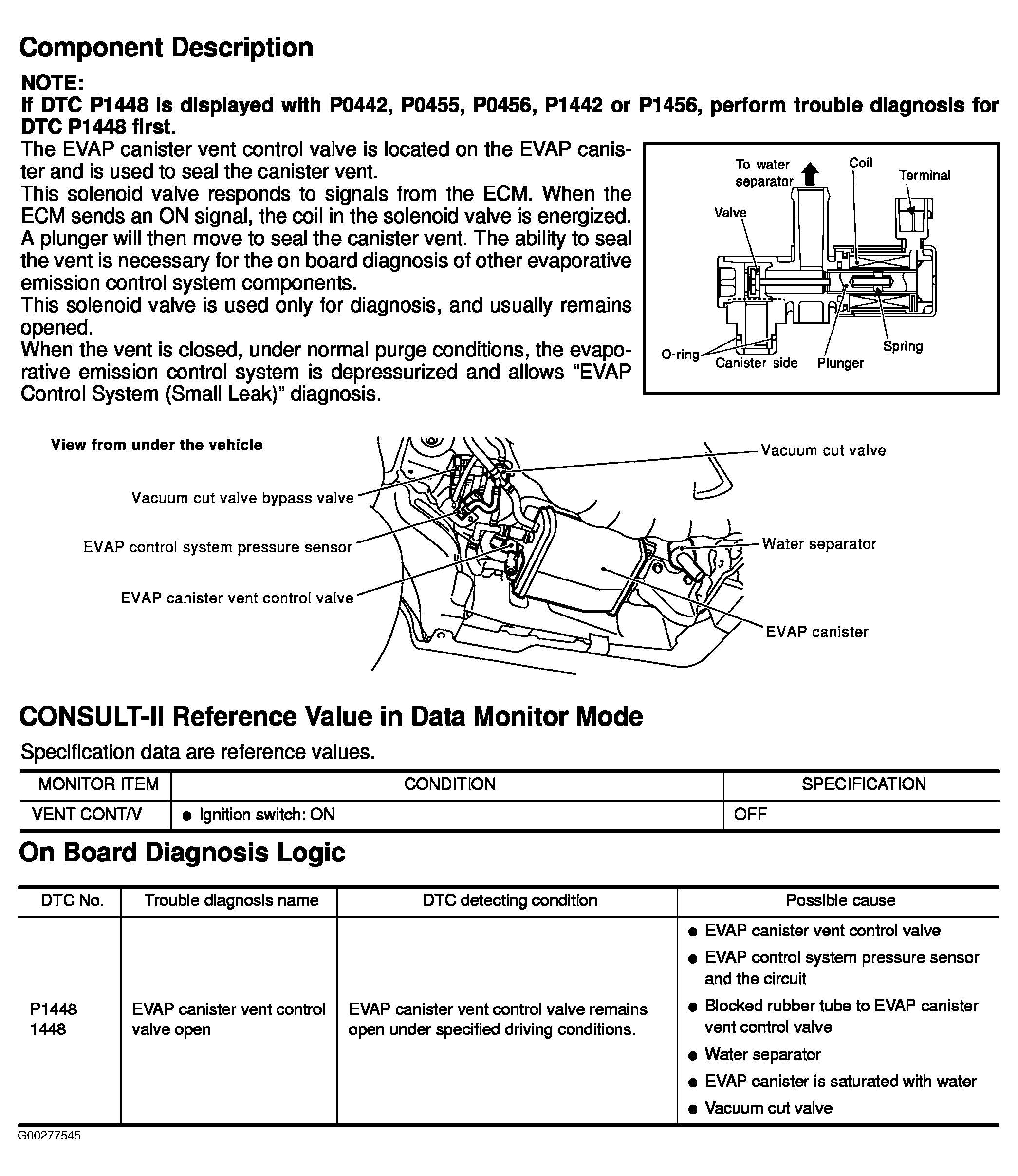 Component Description, CONSULT-II Reference Value In Data Monitor Mode & On Board Diagnosis Logic
