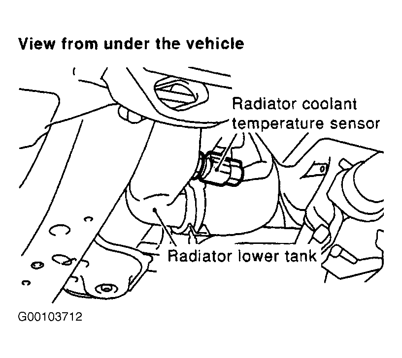 - Turn ignition off. Disconnect radiator coolant temperature sensor harness connector. See Figure . Connect a 2.2 k/ohm resistor between radiator coolant temperature sensor harness connector terminals.