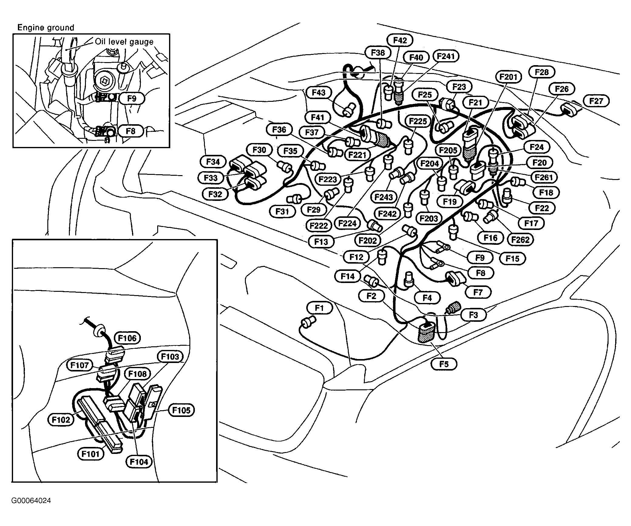 - Check for poor connection at Super Multiple Junction (SMJ) harness connector F105 terminal 24T (Green/Red wire). See Figure and Figure .