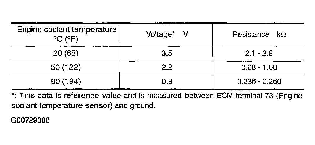 For engine coolant temperature sensor specifications, see Figure and for graph of thermistor performance, see Figure.