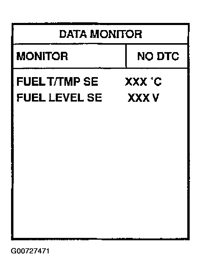 - Check FUEL LEVEL SE output voltage and note it. See Figure.