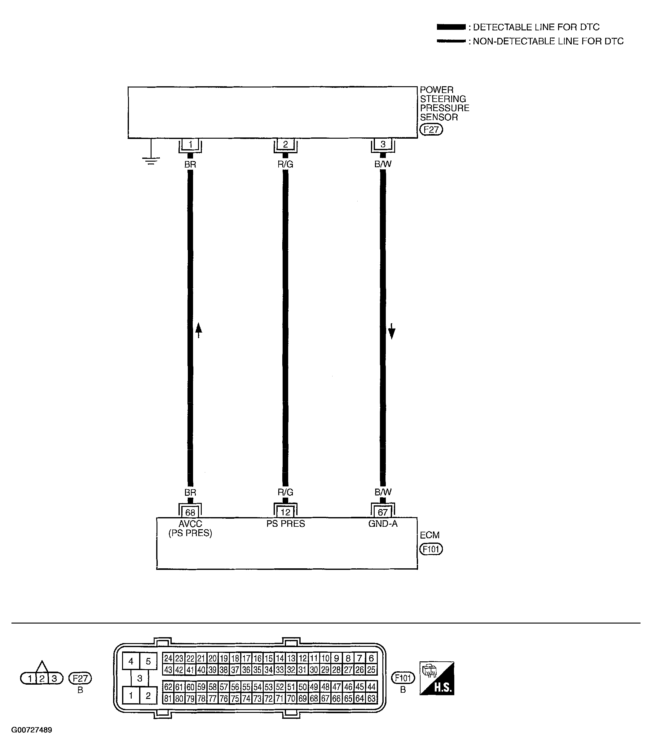 - Check harness continuity between PSP sensor terminal 3 and ECM terminal 67. Refer to wiring diagram. See Figure.