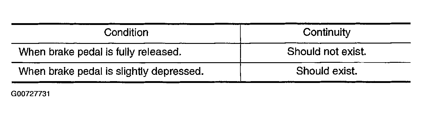3. Check continuity between stop lamp switch terminals 1 and 2 under the following conditions. See Figure and Figure.