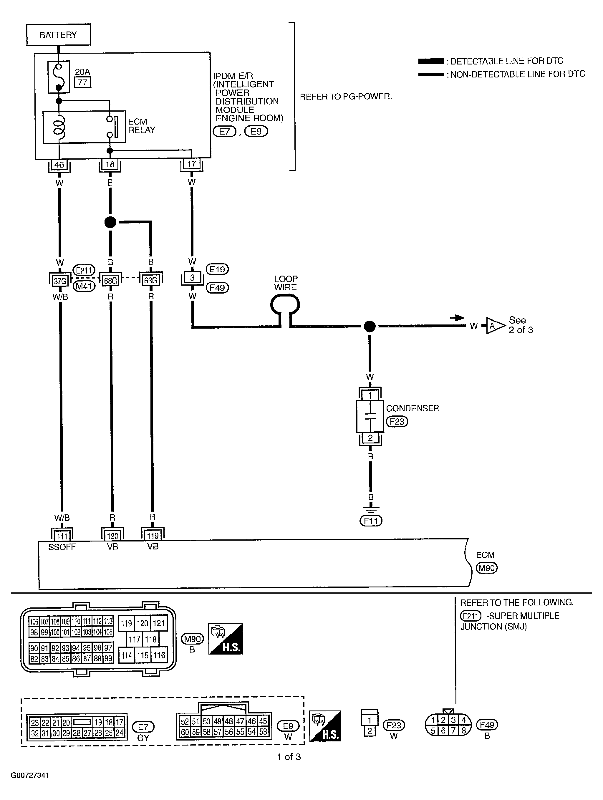 3. Check harness continuity between IPDM E/R terminal 17 and condenser terminal 1.