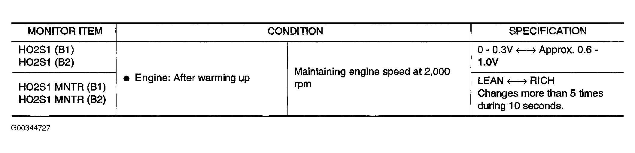 Fig 1: Identifying Heated Oxygen Sensor 1 Monitored Items & Specifications (CONSULT-II)