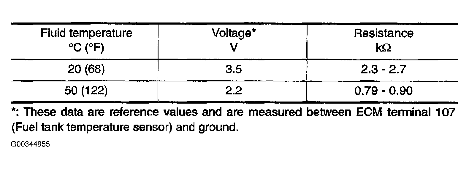 For fuel tank temperature sensor specifications, see Figure .
