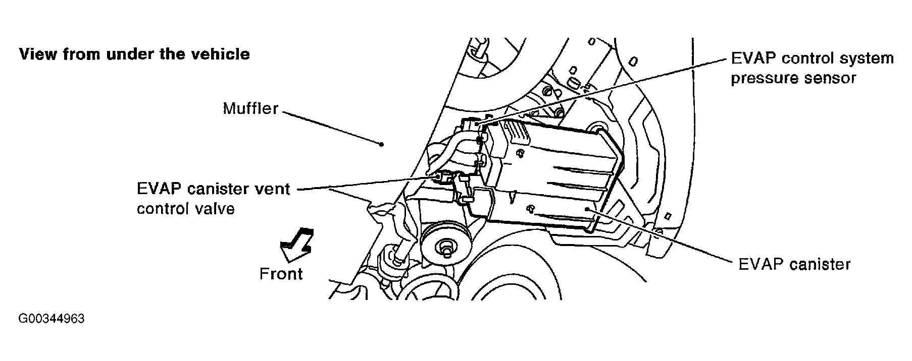 The EVAP control system pressure sensor detects pressure in the purge line. The sensor output voltage to the ECM increases as pressure increases.