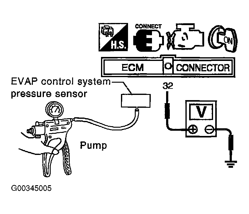 3. Install a vacuum pump to EVAP control system pressure sensor. See Figure .
