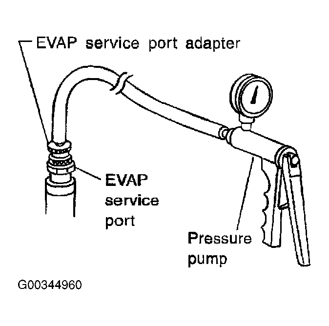 1. Attach the EVAP service port adapter, see Figure , securely to the EVAP service port. For EVAP service port location, see Figure .