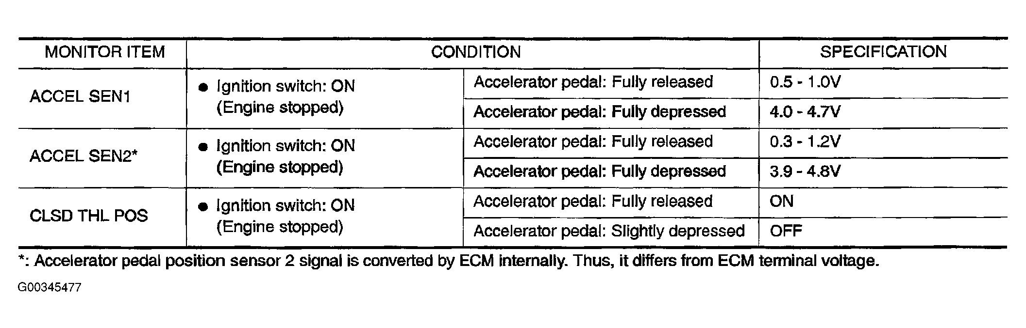 Home >> Infiniti >> 2004 >> FX45 >> Repair and Diagnosis >> Engine Performance >> Engine Control System >> DTC P2138 App Sensor >> CONSULT-II Reference Value in Data Monitor Mode