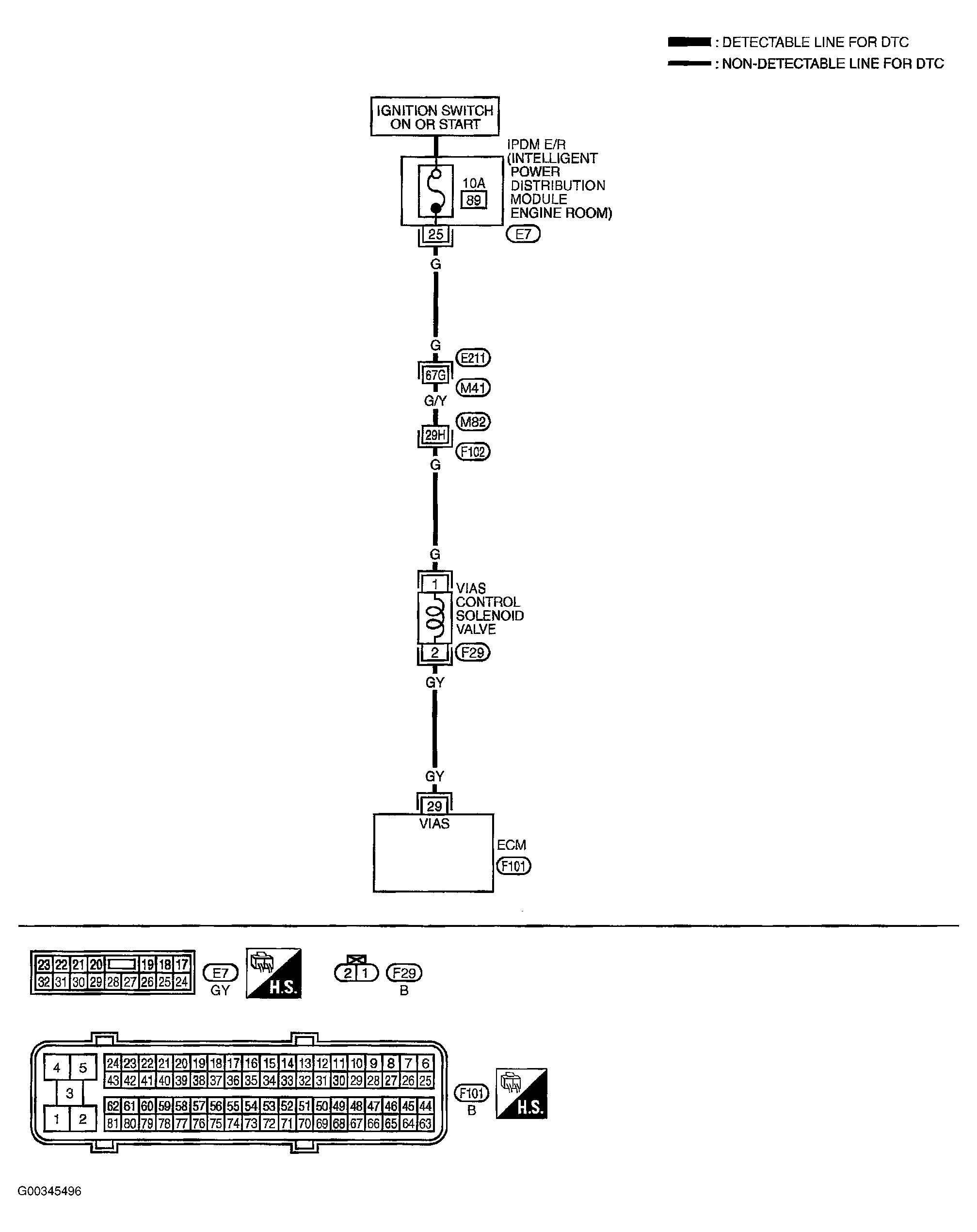 - Harness continuity between IPDM E/R and VIAS control solenoid valve