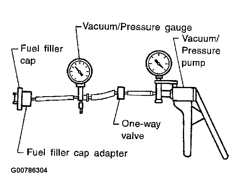 To locate the EVAP leak, install EVAP service port adapter and pressure pump to EVAP service port securely. See Figure and Figure .