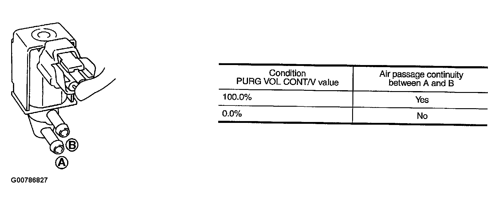 Check air passage continuity of EVAP canister purge volume control solenoid valve under the following conditions. See Figure and Figure .