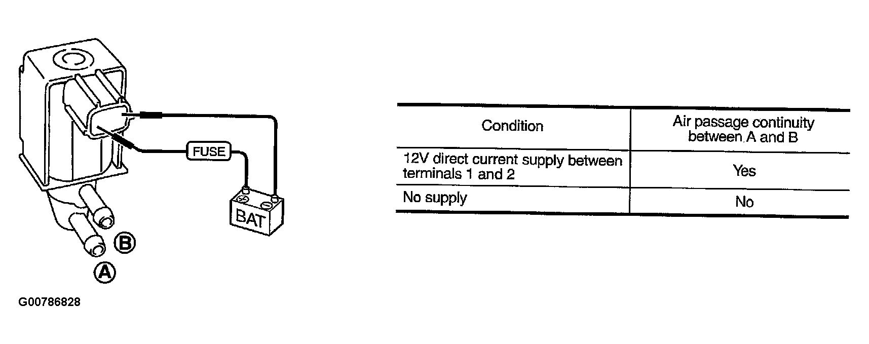 - Check air continuity between hose ends A and B.