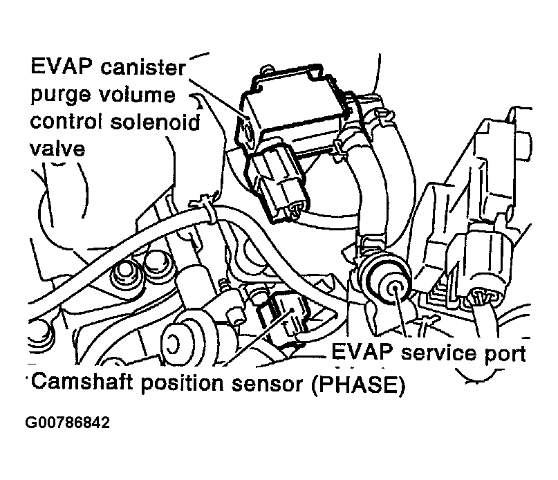 - Disconnect vacuum hose to EVAP canister purge volume control solenoid valve at EVAP service port.