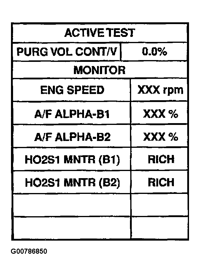 - Perform PURG VOL CONT/V in ACTIVE TEST mode.